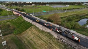 “Ya estamos colocando asfalto: avanzamos con la base asfáltica en la calzada y pusimos los primeros metros de carpeta de rodamiento en el puente y los accesos sobre la Autopista Rosario – Santa Fe. Teníamos que intervenir esta traza para mejorar la llegada a los puertos a los miles de camiones que la utilizan a diario”, explicó el ministro Enrico.